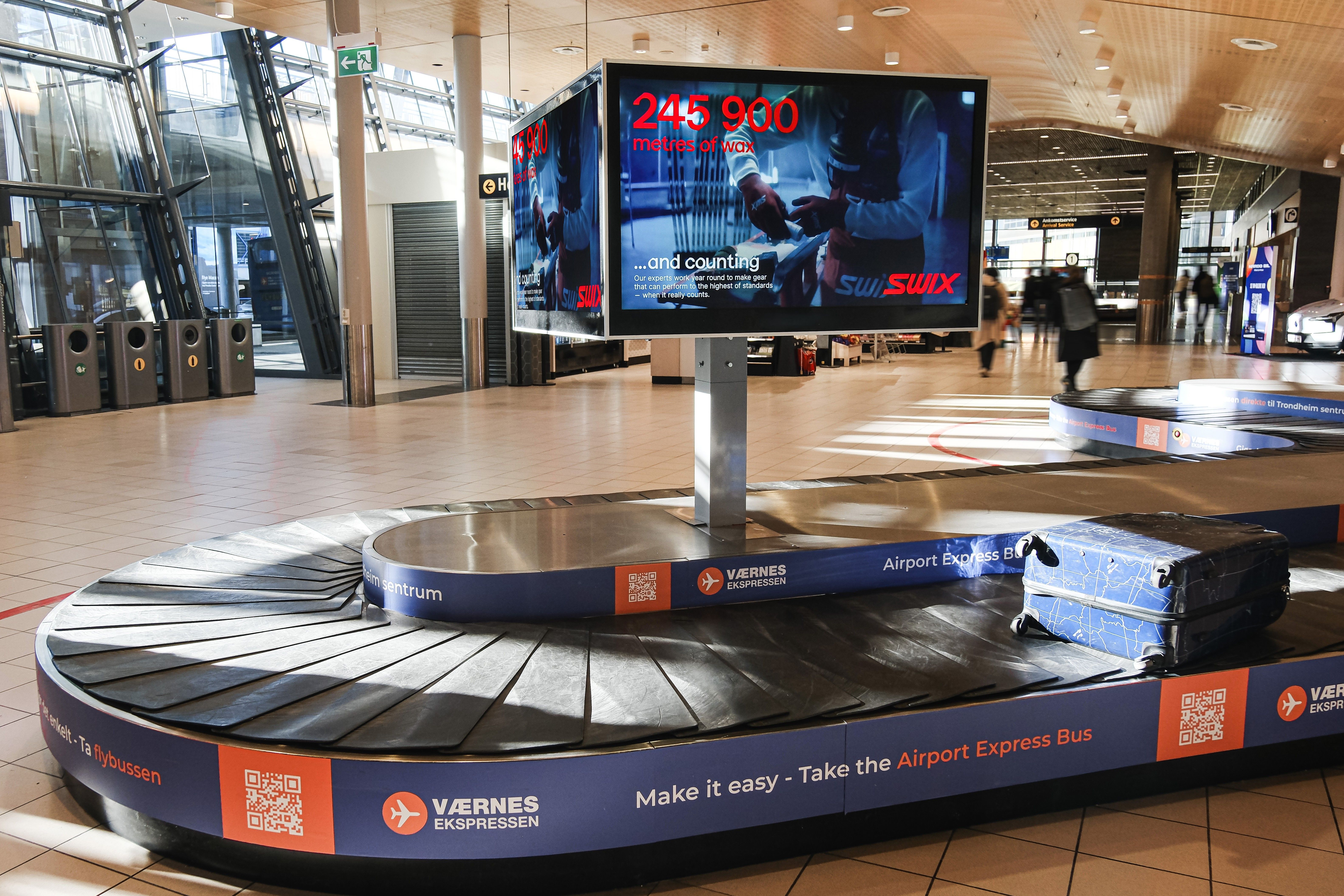 I innenlandsterminalen blir man møtt av en iøynefallende skjerm med sentral plassering på flyplassen. Her når du både de som kommer til og de som kommer tilbake til Trøndelag. Med denne skjermen kan du oppnå høy impact med budskapet ditt.